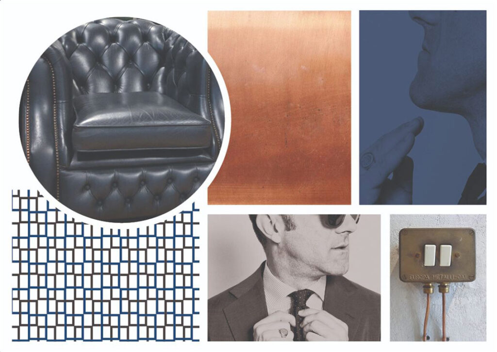Interni commerciali: Pareti grigio chiaro e pannelli decorativi blu oltremare in linea con i colori del brand.