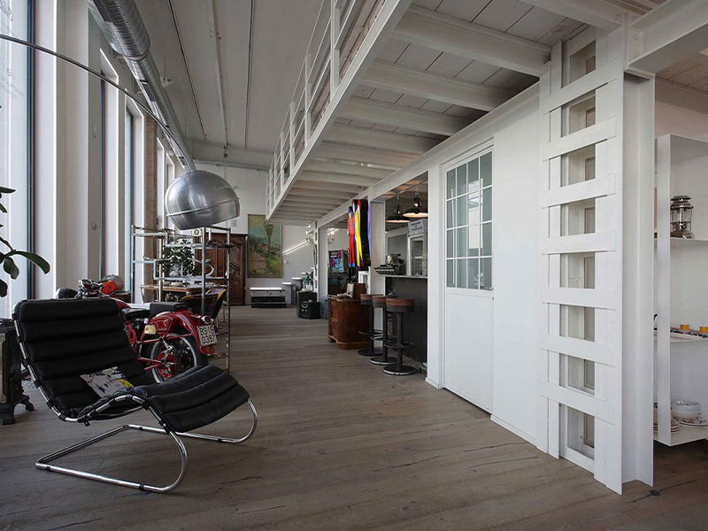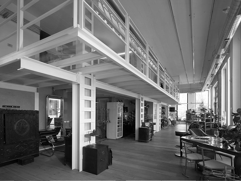 Interni commerciali: Il contesto dal sapore industriale accoglie due realtà: lo studio di progettazione viemme61 e la Old4You. La prima spazia nel mondo dell'interior design e della ristrutturazione; la seconda accoglie antiquariato e modernariato.