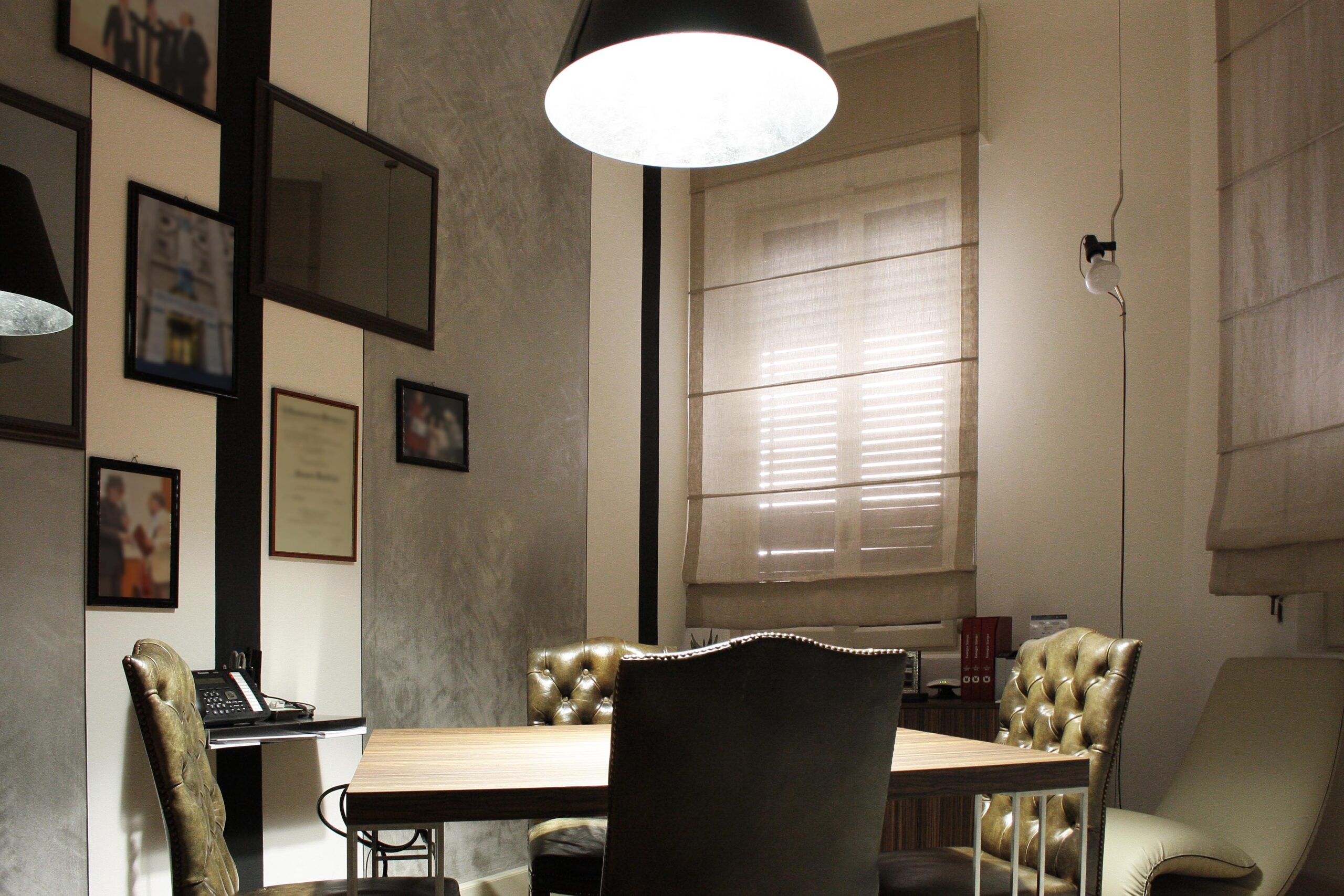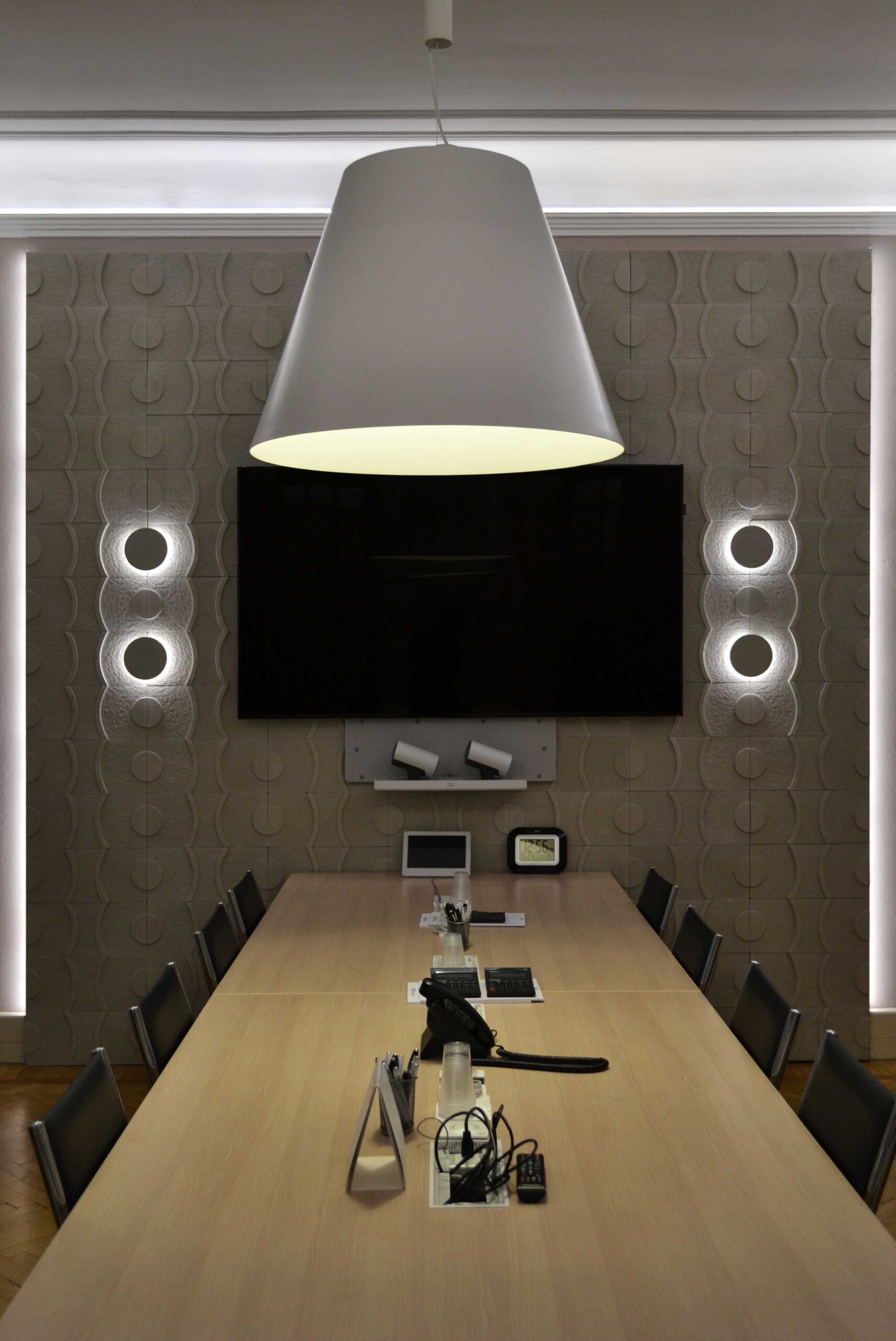 Interni commerciali: Il parquet a spina italiana lasciato nei suoi toni naturali accompagna il fruitore dall’ingresso ai vari uffici e alle sale riunioni, diventando il filo conduttore tra elementi caratteristici dal gusto classico e prodotti attuali dal sapore industrial.